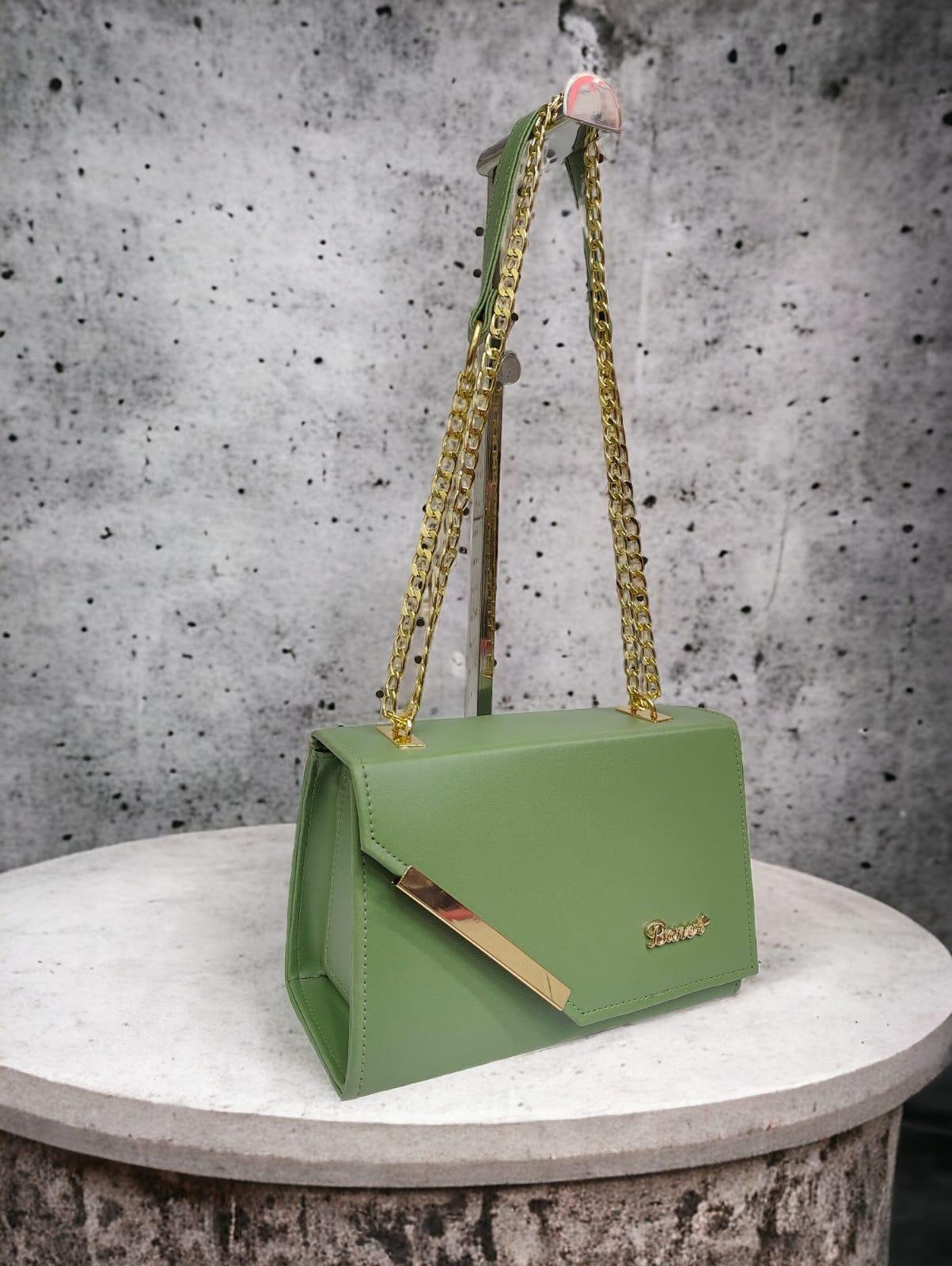 design and a vibrant green finish that add a touch of sophistication to any ensemble. With gold chain straps and